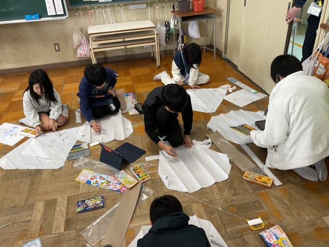 絵を描いたり組み立てたりするのを、6年生が手伝ってくれたりアドバイスしてくれたりしてくれました。