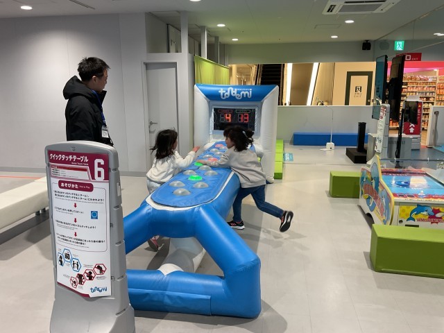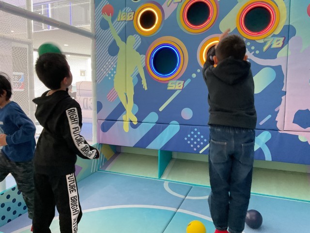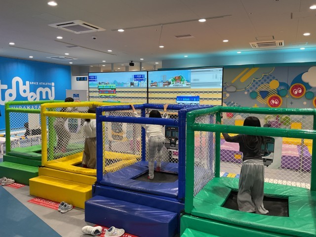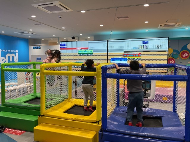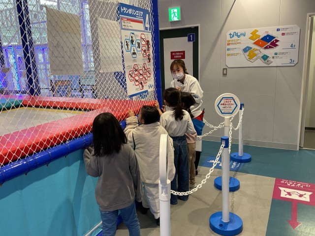 枚方市駅にある「トンデミ枚方」に着きました。専用の靴下に履き替え、たくさんのアトラクションを思い思いに楽しんでいました。