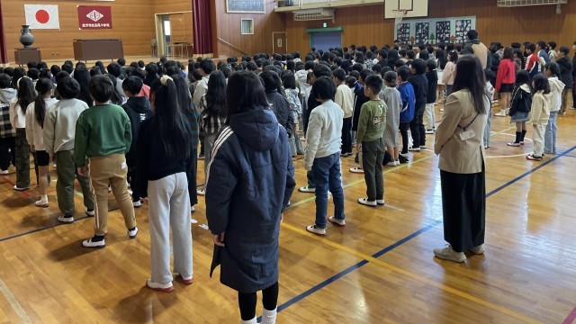 全員で校歌を歌った後、校長の方から話をさせていただきました。
