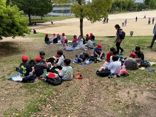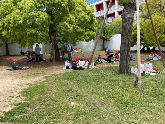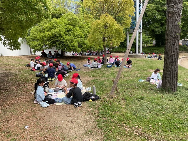 とても天気が良く、気持ちの良い青空の下、お弁当を食べました。