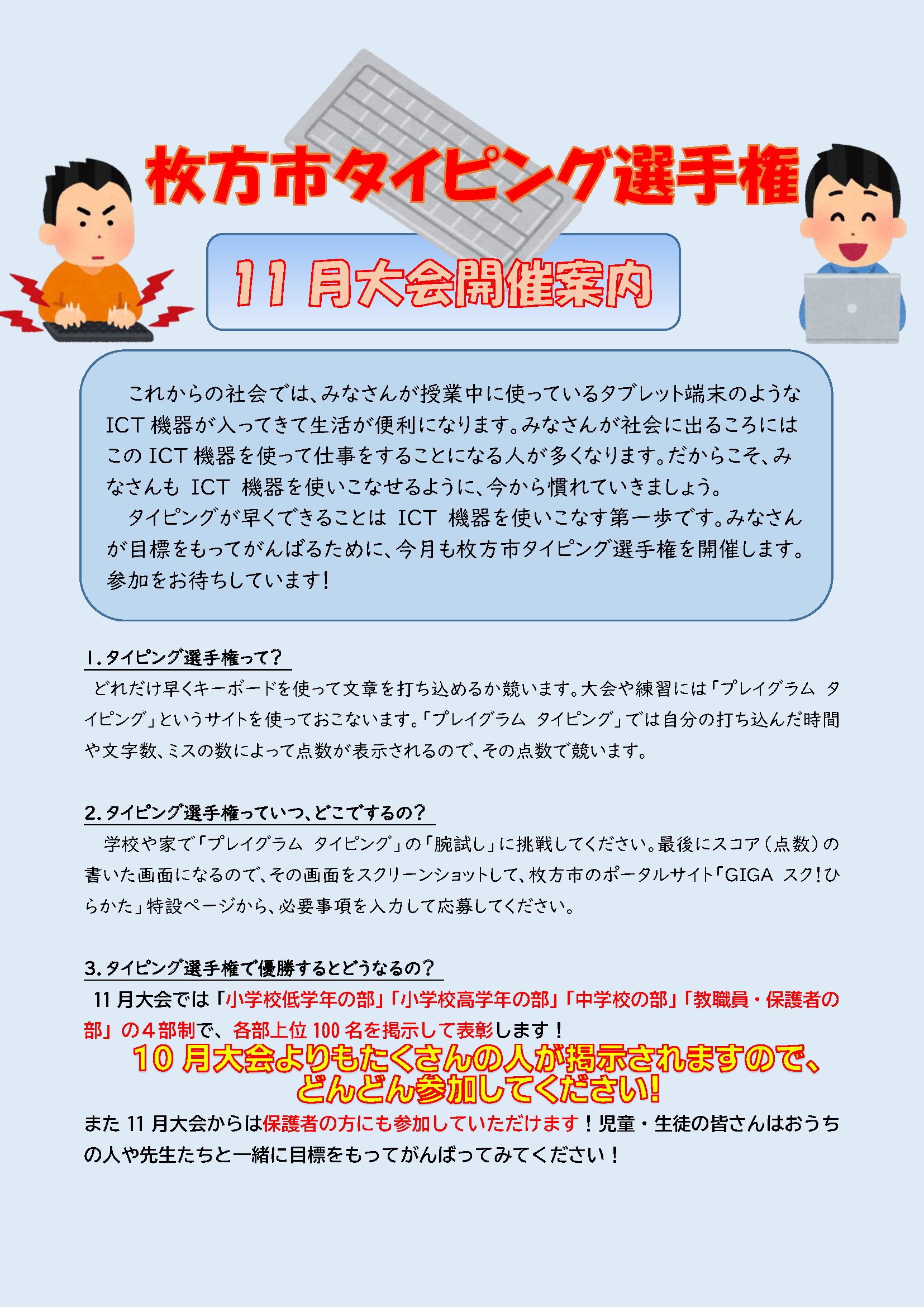 枚方タイピング選手権 11月大会開催案内