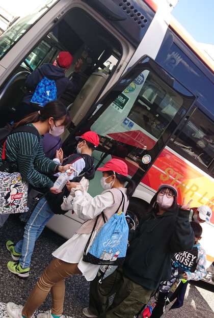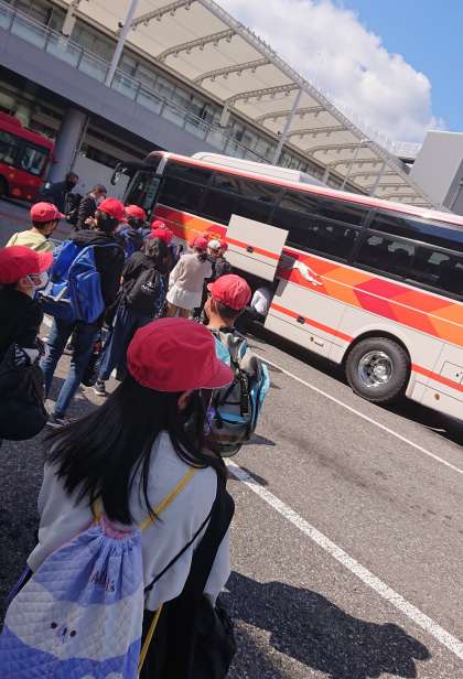 これから、バスでお好み村へ向かいます。