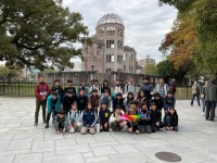 平和公園へ到着。原爆ドームの前でクラス写真を撮り、周りをぐるっと一周しながら、保...