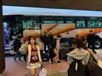先生方から見送ってもらいながら、バスに乗ります。いよいよ出発です!