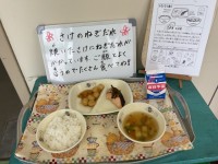 10月3日の給食メニュー月見汁鮭のねぎだれ月見団子(みたらし)ご飯牛乳