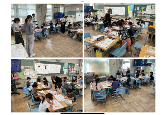 本校では,教職員の授業力向上を目的に,相互授業参観を実施しています。この日は1年生の授業が校内公開されました。国語科の授業で,「サラダでげんき」という教材での授業でした。子ども達は「しょくざいカード」を作るために,一生懸命お話を読みながらワークシートに取り組んでいました。先生からは,「お友達と協力したり,自分の力でじっくり考えたり,どうするかは自分で決めて,自由に取り組んでいいよ。」との言葉がありました。1年生のうちから学習の場面で自己選択・自己決定することはとても大切なことだと思います。