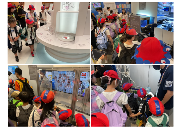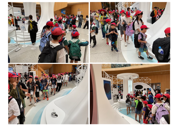 1年5年 万博へ③ 公開日 2025/10/10 更新日 2025/10/10 学校の様子 大阪ヘルスケア・パビリオンにやってきました。大勢の見学者で混み合っていましたが,様々な発明品などを前に興味津々で見学していました。少し難しいようなものもある中,「これって何?」「触っていいの?」と先生やスタッフの方に声をかけている様子が見られました。限られた時間での見学だったので,もっとゆっくり見ることができたら,もっと学びが深まっただろうと少し残念な気もしました。 いいね(0)