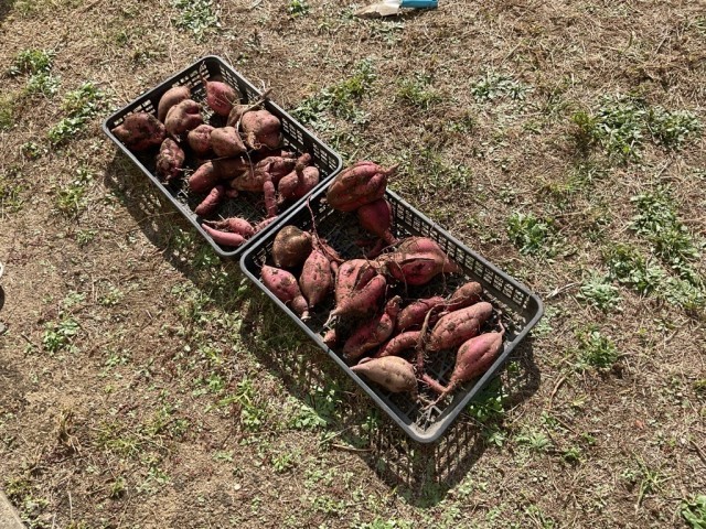 さつまいもの葉が畑いっぱいに広がっていたので、大きなお芋がたくさん採れることを期待していましたが、期待以上の大収穫でした。