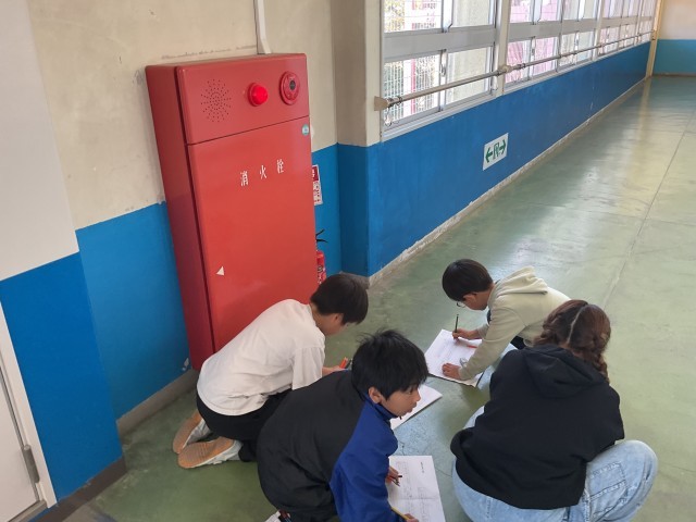 この日は教室配置図に消防設備を書き込んでいくグループ作業を行いました。