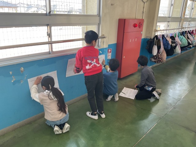 友だちと協力しながら校内の消防設備を見つけ、火災が発生した時はどのような仕組みで「早く・正確に」伝えられるようになるか学びました。