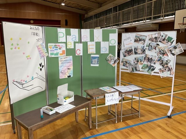 6年生はHKT(ひこたん)で平和について探究してきました。今日は,これまでの探究の成果を「Peace Expo!」という形で発信しました。校内のいくつもの会場に分かれ,それぞれが探究してきた内容ごとにブースを用意して取り組みました。他学年の子ども達や,保護者,地域の方々をお招きし,「自分たちの得意なことを活かして学校を平和にしよう」という目的で様々なことを体験したり,考えたりしてもらおうというものです。まずは体育館に集合し,全体の説明や各ブースの紹介がおこなわれました。その後は体育館や運動場,各教室,音楽室,家庭科室,図工室,探究LABOに設置された各ブースに分かれ,それぞれに工夫された発表,体験に取り組みました。笑顔で取り組む子ども達の様子を見ていると,6年生だけでなく,多くの人が平和について考える大切な時間になったのではないかと思います。6年生の皆さん,お疲れ様でした!