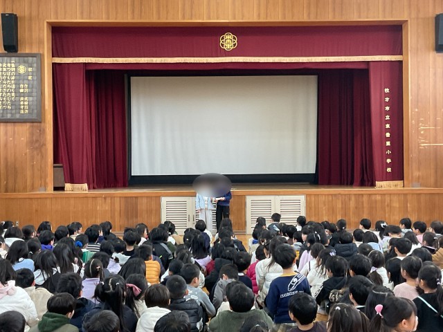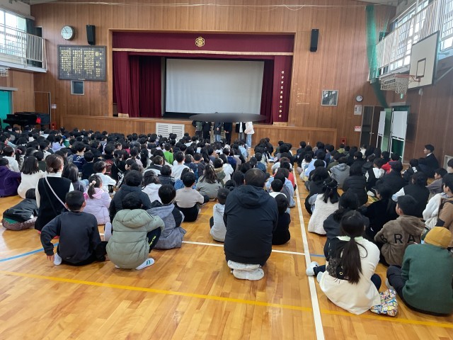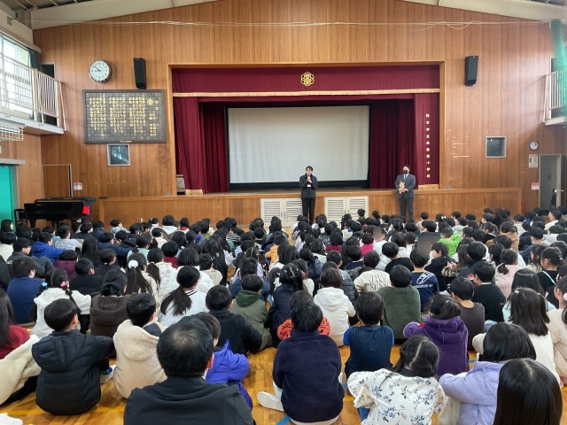 その後、3学期から赴任された先生の紹介と、3年生からHKTのお願い、ミニTED実行委員会からミニTEDについてのお知らせ、生活指導の先生からトイレの使い方についてのお話 がありました。