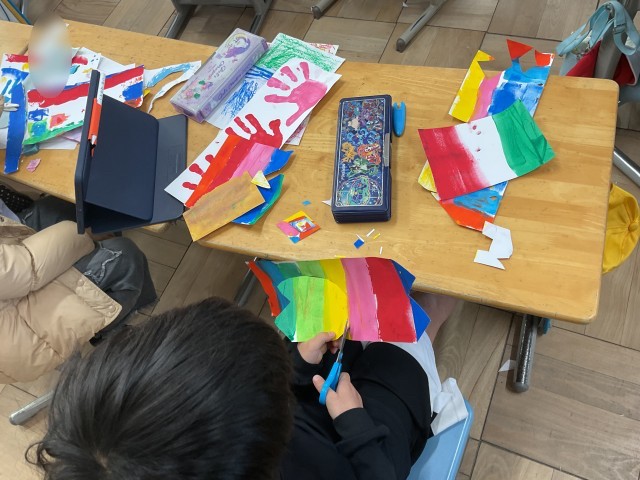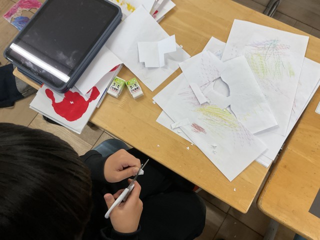 1年 見つけたデコボコとこれまでの作品を使って 公開日 2026/02/16 更新日 2026/02/16 学校の様子 以前の図工の時間に学校の中にあるいろいろな「凸凹」をを色鉛筆を使ってうつしとっていました。今回はこれまでの作品の余りや、うつしとった模様などを使って、自分で考えた世界を作ります。台紙も自分の作りたい世界に合わせた色画用紙を選んで、さあ作成です。森の世界、海の世界、一体どんな世界が広がっていくのでしょうか。 +2 いいね(0)