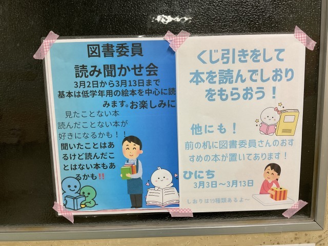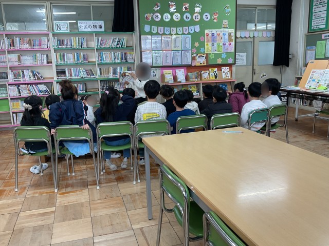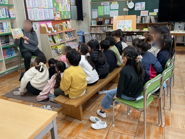 今年度から学校司書が隔週で配属され、担任の読み聞かせだけでなく、司書さんの読み聞かせもあり、さらに図書委員会の子どもたちも読み聞かせをしてくれているので、子どもたちが本に触れる機会が増えました。
