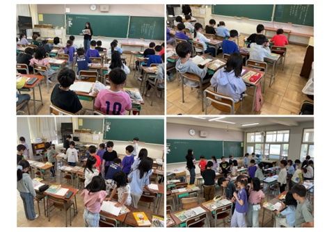 4年生の社会科では,水について学んでいきます。浄水場や下水処理場のことなどを学びますが,まずは身近な水を見つけようということで,校内で水について考えていました。水というのは本当にさまざまなところにあるもので,校内のことを思い起こしてみても,たくさん見つかったようです。自分で思いついたものをノートに書き,それをクラスで共有するために互いのノートを見て回っていました。これから詳しく調べていくことになるので楽しみですね。