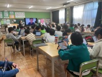 中学生が防災について学んだことを1年生に教えに来てくれました。スライドを使って1...