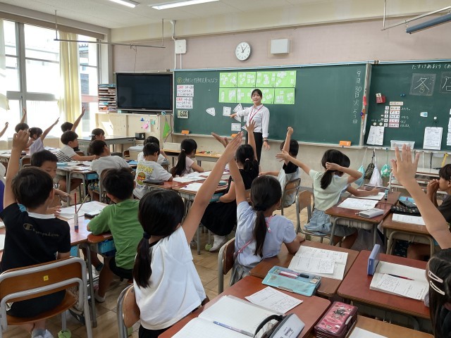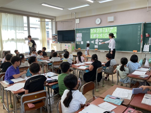 2年生クラスに入っている教育実習生が算数の授業をしました。