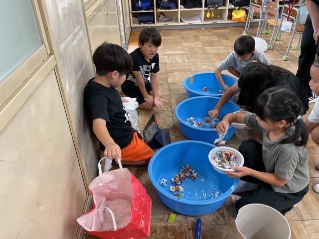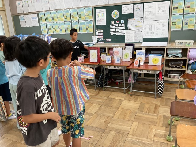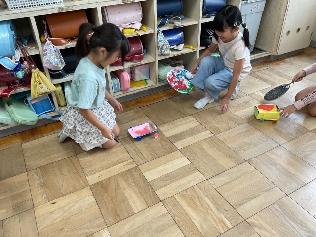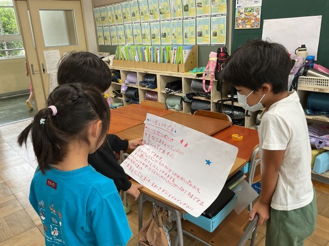 1年生を招待して、おもちゃで遊んでもらう予定なのですが、その前に2年生の全クラスで遊んでみて、もっと工夫した方がいいところをアドバイスし合っていました。