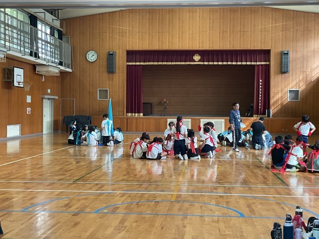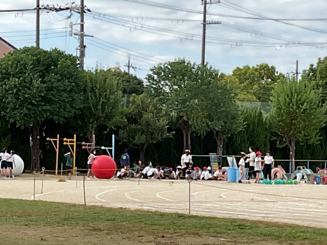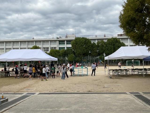 5・6年生の児童が、明日に向けて準備をしてくれました。写真にはのっていませんが、遊具を固定したり、トイレ掃除をしてくれたりと様々なところで活動していました。
