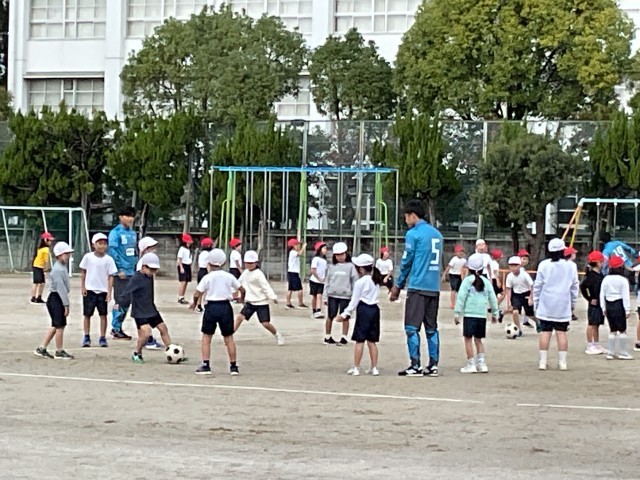 FC ティアモ枚方の選手の方がこられて、2年生にサッカーの出前授業をしてくださいました。