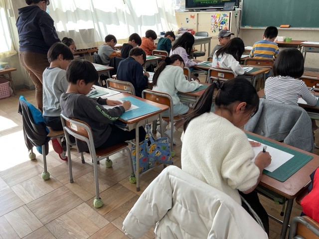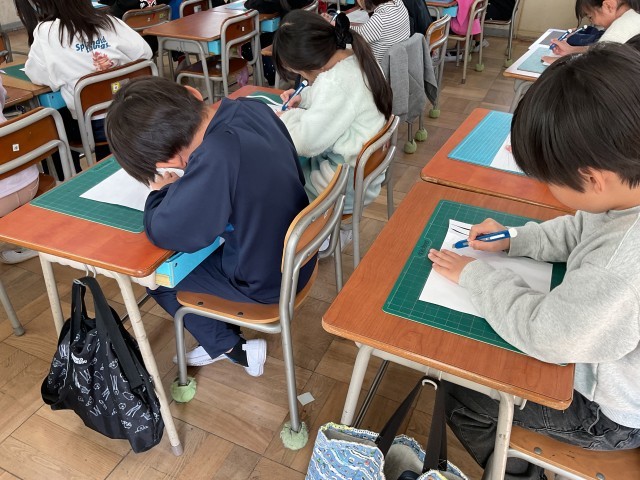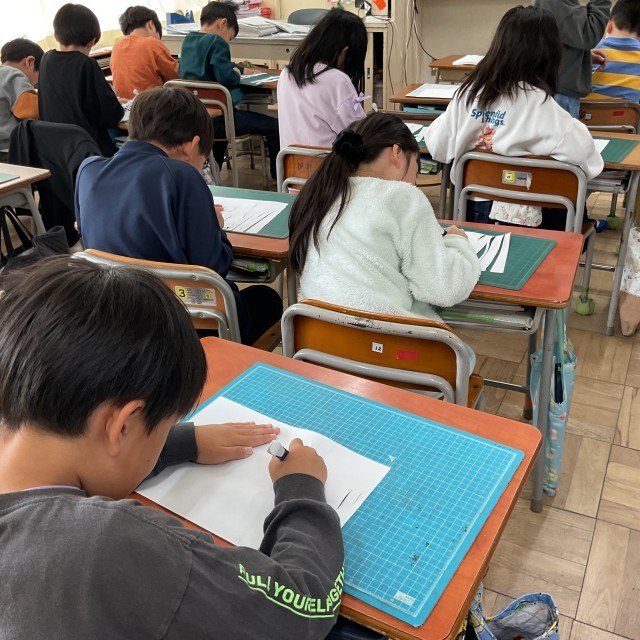 2年生は図工で、カッターナイフの使い方を学習していました。