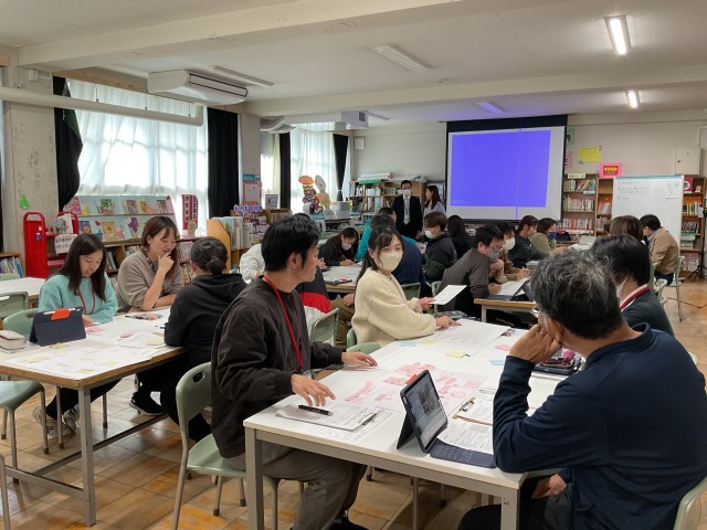 授業後、研究協議を行い、先生方の意見交流も活発に行われました。最後に教育委員会教育研修課主幹の上田先生から、これからの総合学習について講義をしていただきました。