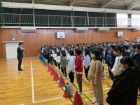 5年生が体育館から教室へもどった後、4年生が体育館へ。手には心をこめて作ったメッセージカード。6年生へ向けたお祝いのメッセージが書かれています。自分が作ったメッセージカードを直接6年生へ。お互い、少し照れくさそうでしたがとってもうれしそう♪