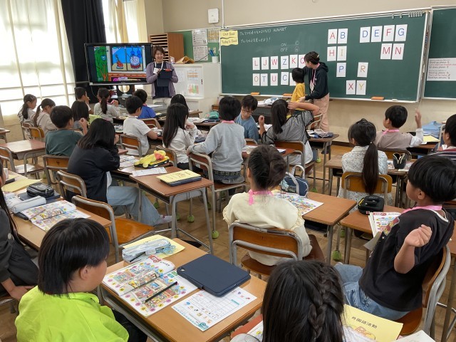 外国語活動の時間でした。3年生も半年が経過して外国語活動に慣れてきたと思います。