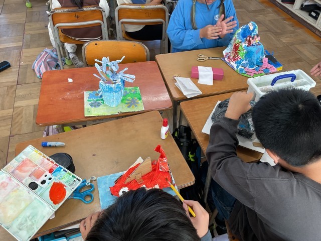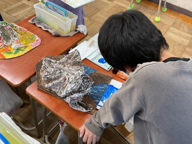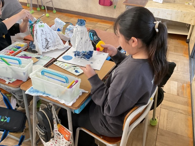 液体紙粘土を染み込ませて、いろんな形を作り、そこにまた色々と物語を紡ぐ。そんな気がしました。みんな、作品を向いています。顔を上げている人がいないんです。