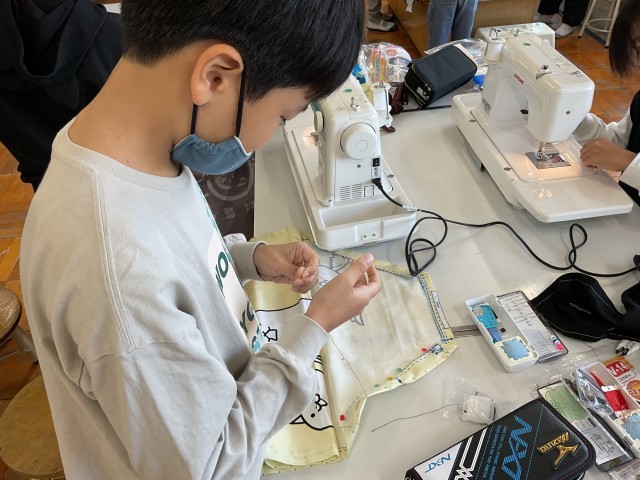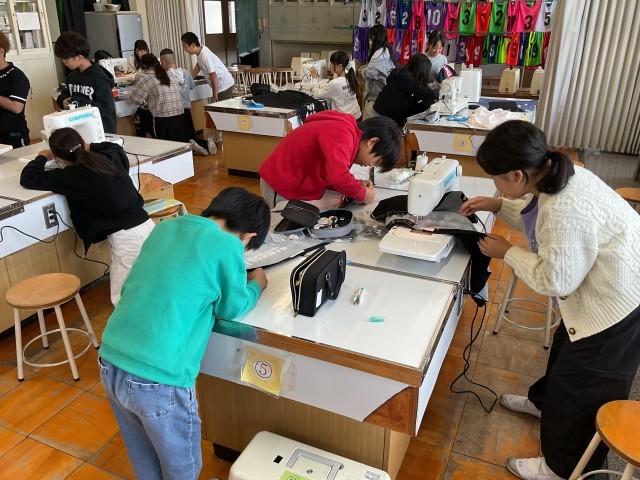 さて、家庭科でエプロンをミシンなどを利用して作っていました。そろそろ仕上げです。