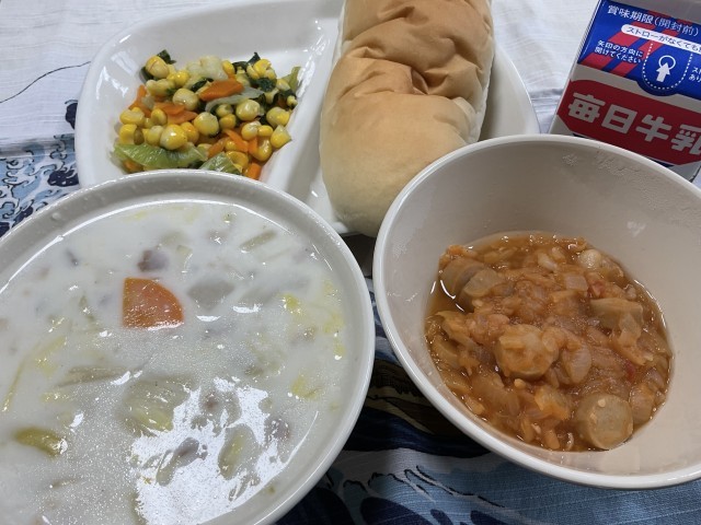 この日は、冬野菜の米粉クリームスープもありました。美味しく頂きました。全てが洋食でしたね。みなさんいかがでしたか。