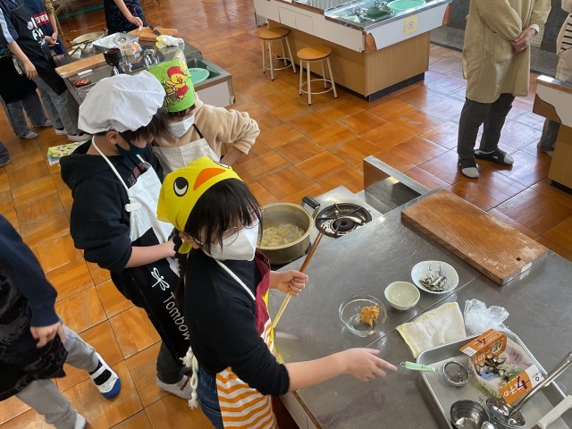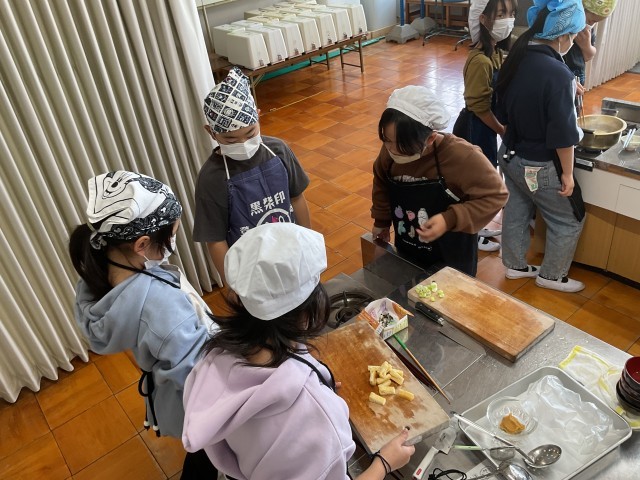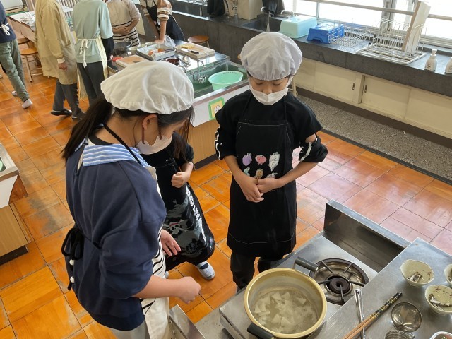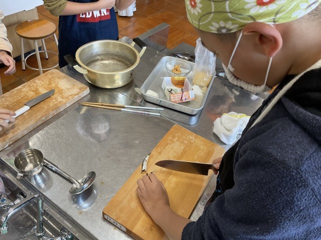 この日はお味噌汁とご飯の調理実習でした。和食の定番とも言われるこの調理。子ども達は、手際よく準備、カット、炊き出し、味付けなどに取り組みました。とても協力的でした。声を掛け合い、終わったものは片付けるという行動を教えてくれた人、なかなか頼もしい様子をたくさん見ることができました。