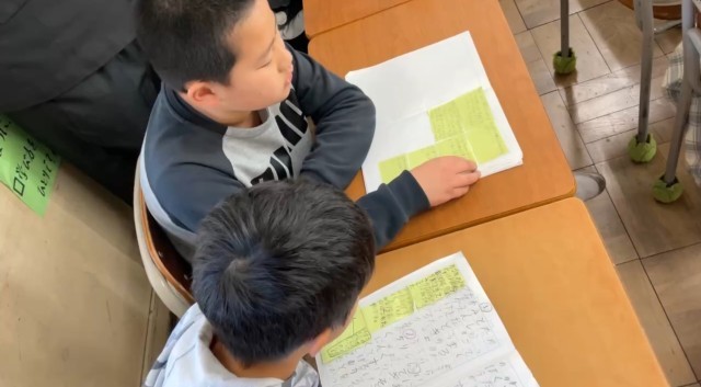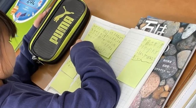 たくさんの先生方の参観がありましたが、一人ひとりがそれぞれに活動していました。誰かと話したり、相談したり、また一人で段落構成を考えたりと。そこに先生がファシリテーターとして関わっていました。学級閉鎖あけで全員が揃ってはいませんでしたが、それぞれにやるべきことを分かっていたような気がします。