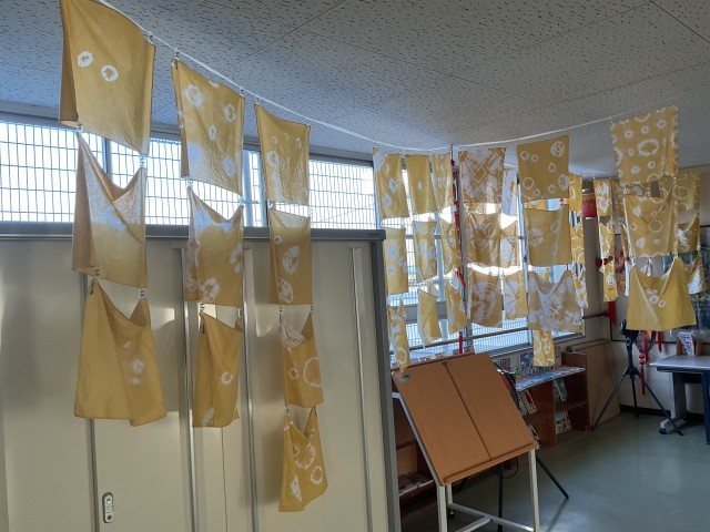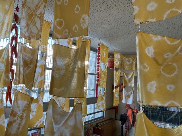 また、この染め物は、我が日本の着物、各地での伝統工芸にも繋がり、そして、その紋様は、あの鬼滅の刃の紋様にもつながるのです!!校長室にのれんが欲しいんですがねぇ。このテーマ、総合的な学習に繋がりますね、と密かに考えていました。