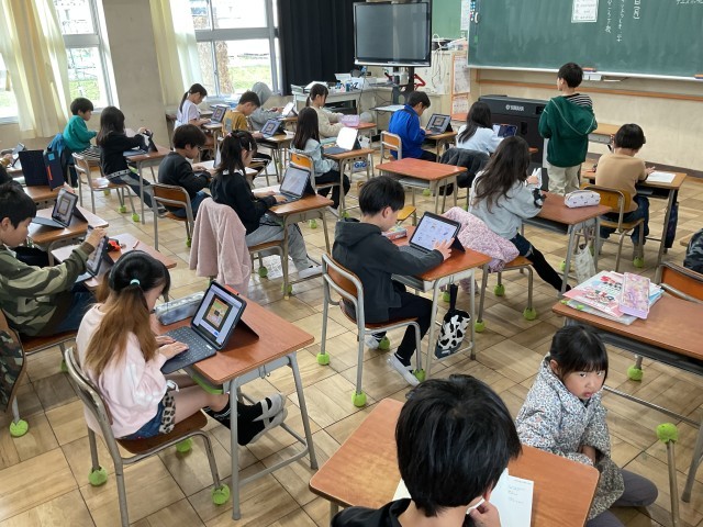 2年生の朝学習。2クラスとも2年生ですが、タブレットでローマ字うちに挑戦している児童をチラホラみました。今年度も明日だけとなりました。