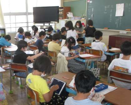 下は、朝の学習の様子です。終わった人は読書など、自分で工夫して学習をしていました。
