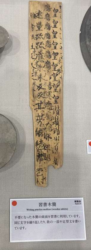 何度も同じ漢字を、練習として書き綴っている木簡を見て、自分たちが漢字ドリルに書いているのと同じだねと感嘆している様子も見られました。