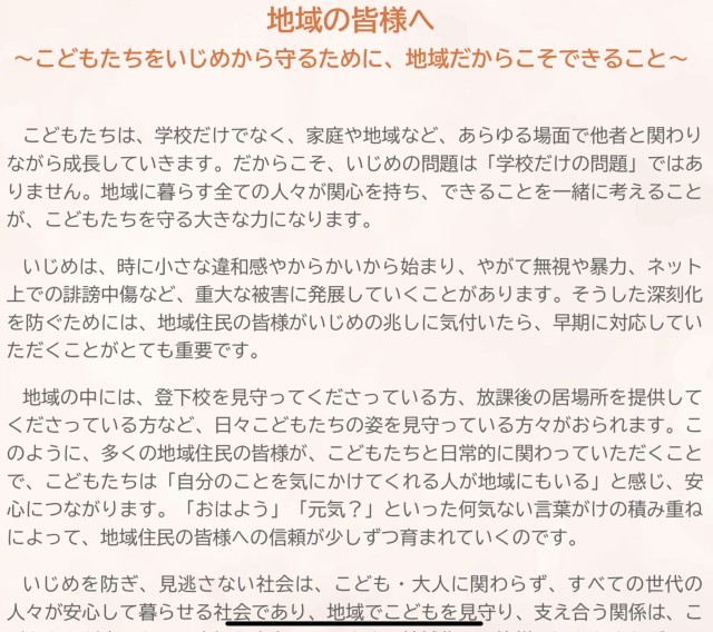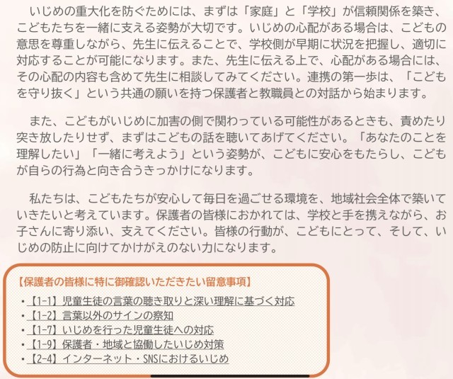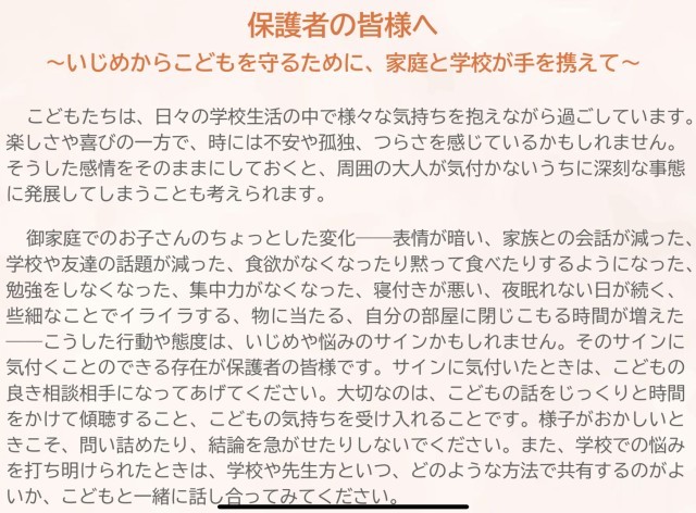 いじめ未然防止は学校だけでは抱え切れません。ご家庭の協力なしには解決、未然防止はできません。