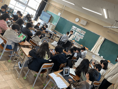 先生が最後の学級通信を読んでいました。