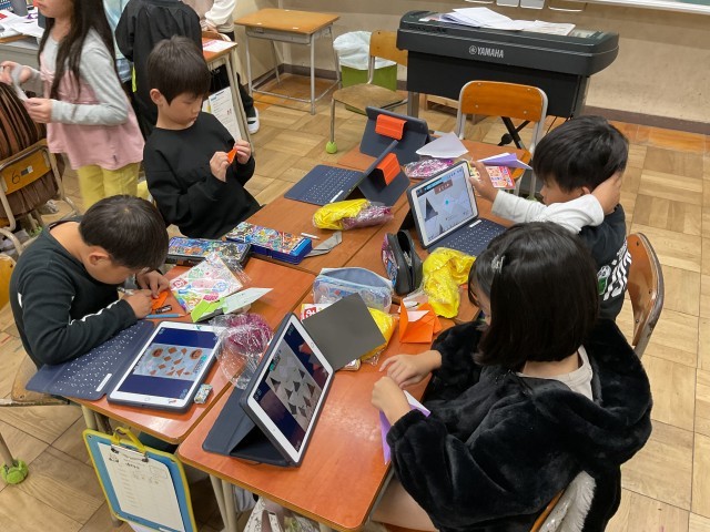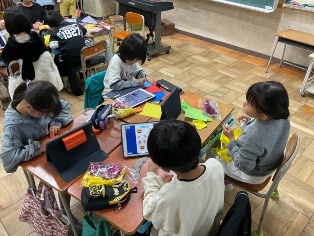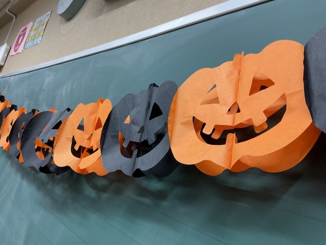 2年生 何やら、楽しそうなかざりがたくさんありました。 そして、子ども達は机の上で何やらせっせとつくっていました。正門で朝から「トリックオアトリート」と話しかけてくるのです。 ん?と思っていたら今日はハロウィンの日だったのですね!