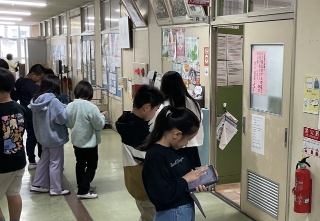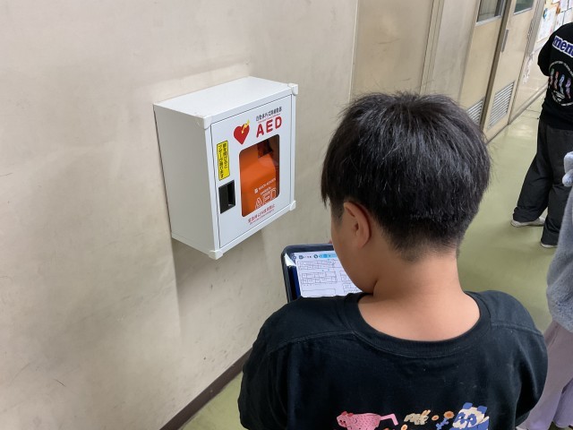 今日は、3年生の子ども達が、防災の観点から校内の「消化器🧯」「消火栓」「AED」の設置場所を確認していました。