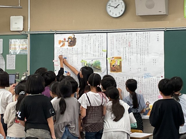 昨日は、今年度初めての校内研究授業を4年2組で行いました。4年生が「ひとつの花」の教材をテーマに学習しました。