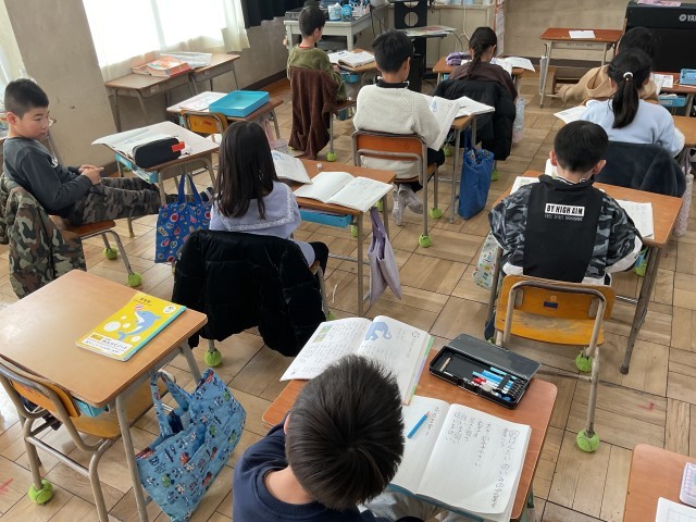 4年生に行きますと、合同で鑑賞会を開いていました。