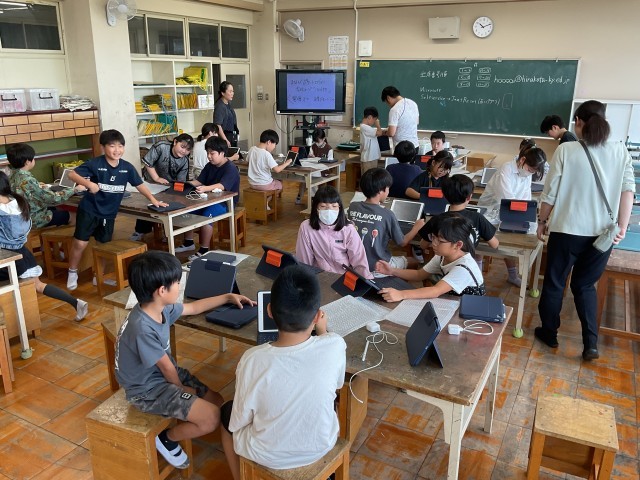 タブレットの入れ替えを行いました。今日は、4年生でした。
