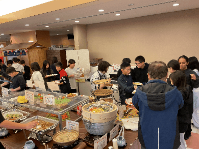 コテを使って、そのまま食べるんですよと言われて、もんじゃ焼きと同じ?と話している人もいました。もんじゃ焼き知っているんですね?