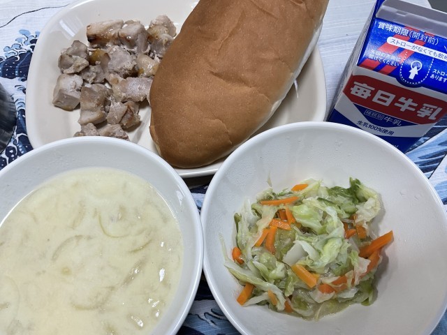 今日は、さつまいものクリームスープでした。さつまいもに気づいていなかったのですが、甘さは感じていました。寒い今日に、ぴったりでした。温まりました。