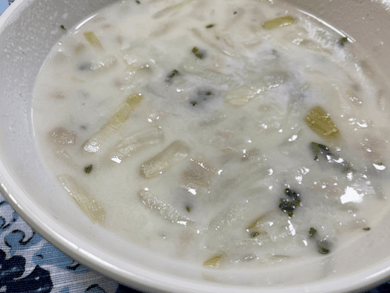 すりつぶしたインゲン豆と、牛にゅう、生クリームが入っているので、クリーミーなスープになっています。豆が苦手という人も食べやすかったです。