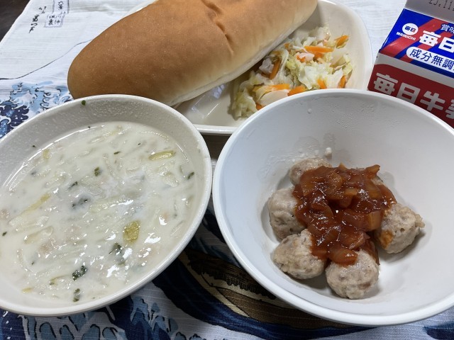 今日は、月見団子と月にウサギの絵が描かれたかまぼこを入れた月見汁でした。なんだか、まるいものにたくさん囲まれて、気持ちも月見気分になりました。