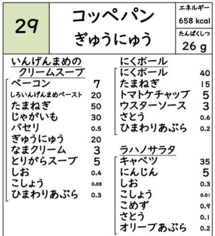 10月29日(水)おいしい給食(インゲン豆のクリームスープ)