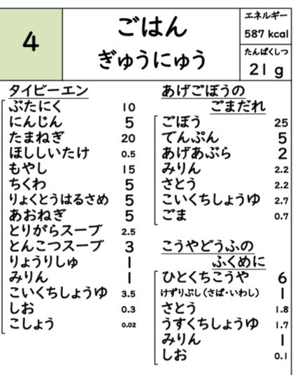 ちゃんぽんのような見た目ですが,麺の代わりに春雨を使った熊本県の郷土料理です。元々は,中国の料理を日本の食材にアレンジし,熊本に根付いたのが始まりと言われています。今日の給食では、ご飯と組み合わせました。
